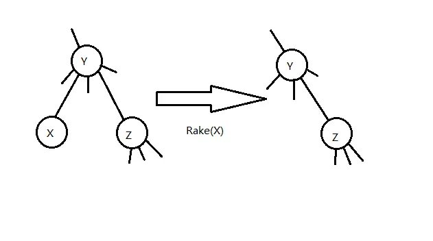 Rake Tree 里的点一定有一个中儿子。Rake Tree 可以做类似于 Splay 树的旋转操作(只需保证其中序遍历不变即可,旋转一个点时保持其中儿子不动)。