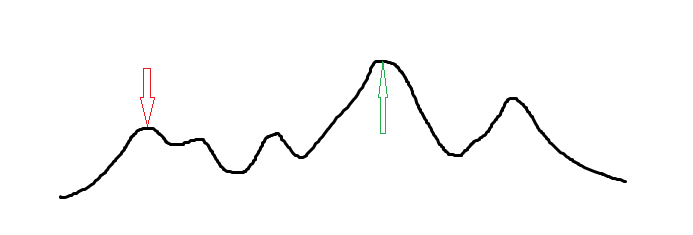 但是对于多数需要求解的函数,爬山算法很容易进入一个局部最优解,如下图(最优解为