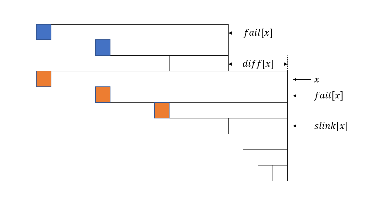 dif [ x ] = len [ x ] - len [ fail [ x ]];
