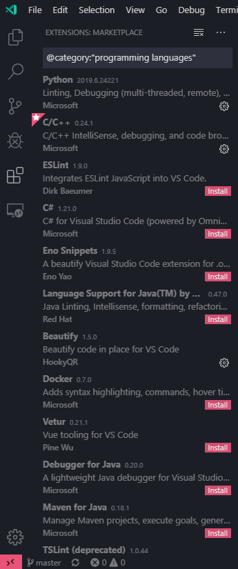 在 VS Code 中打开扩展商店,在搜索栏中输入 C++